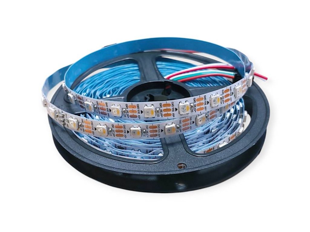 Digitálny RGBW-IC LED pásik SK6812 | SMD s hodnotou krytia IP20 a dĺžkou 10 metrov (2x5m). Na tomto pásiku s hustotou 60led/m je možné ovládať každú jednu LED osobitne (300 pixelov). LED pásik je napájaný 5V jednosmerným napätím a na svojich oboch koncoch má umiestnené JST SM konektory pre jednoduché spájanie.
