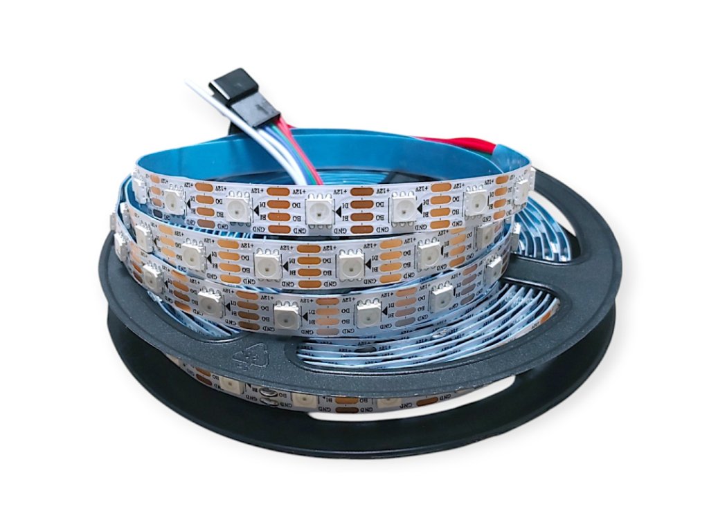 Digitálny RGB-IC LED pásik WS2815 | SMD s hodnotou krytia IP20 a dĺžkou 5 metrov. Na tomto pásiku s hustotou 60led/m je možné ovládať každú jednu LED osobitne (300 pixelov). LED pásik je napájaný 12V jednosmerným napätím a na svojich oboch koncoch ma umiestnené JST SM konektory pre jednoduché spájanie.