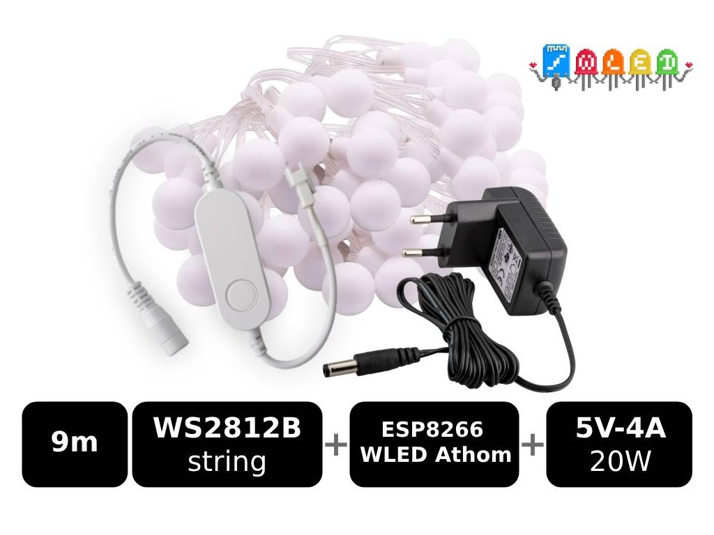 Programovateľný set: 9m, WS2812B string | IP67, ESP8266 WLED Athom Controller, 5V-4A (20W)