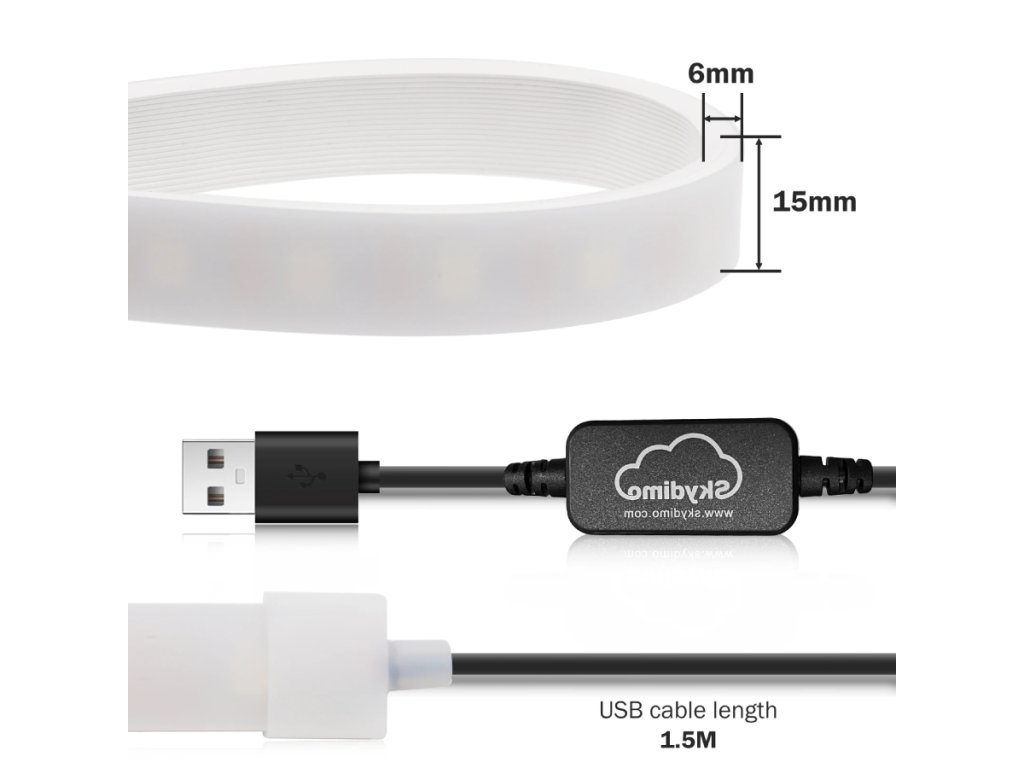 LED pásik je rozdelený na tri prepojené časti – dve bočné s dĺžkou 26 cm každá a vrchná časť s dĺžkou 70 cm. Šírka každého tohto LED pásika je 1,5cm a hrúbka 6mm.