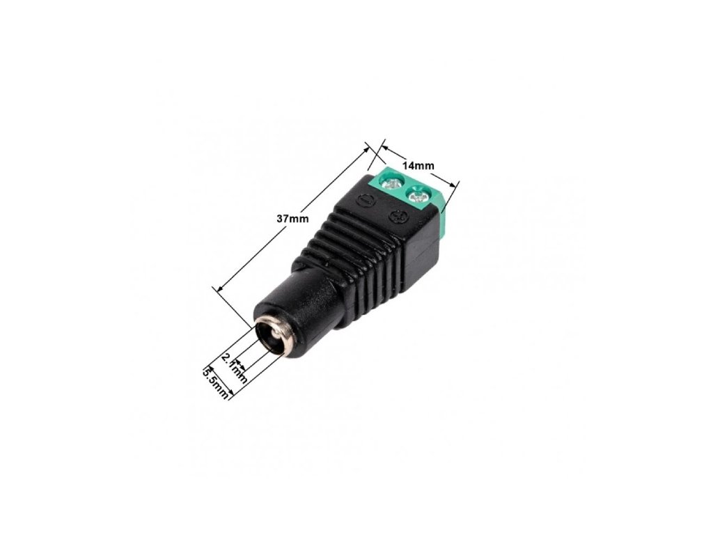 Napájací konektor (samica) so svorkovnicou. Vnútorný priemer 2,1mm , vonkajší priemer 5,5mm.