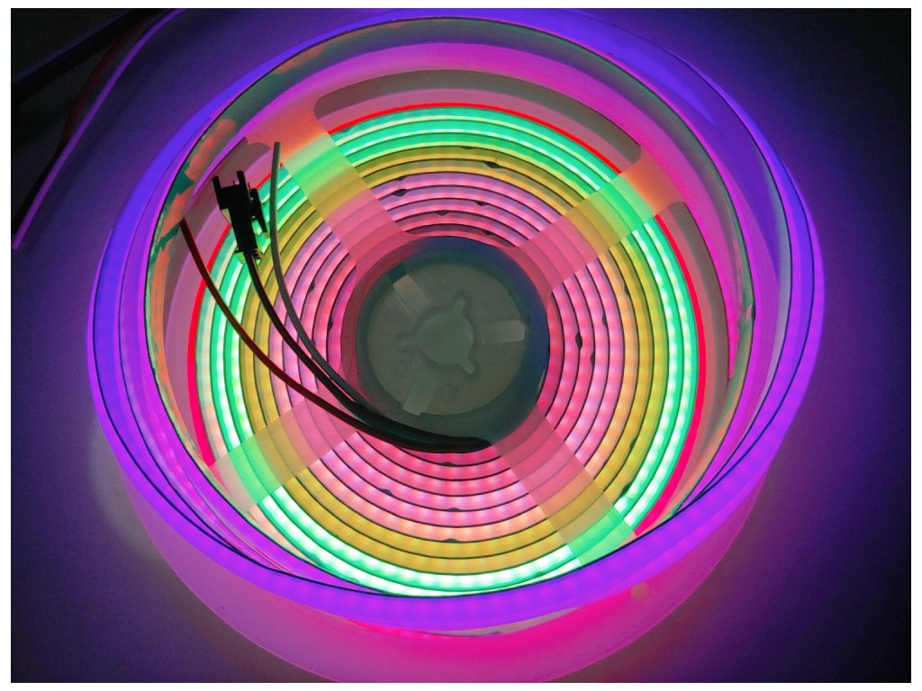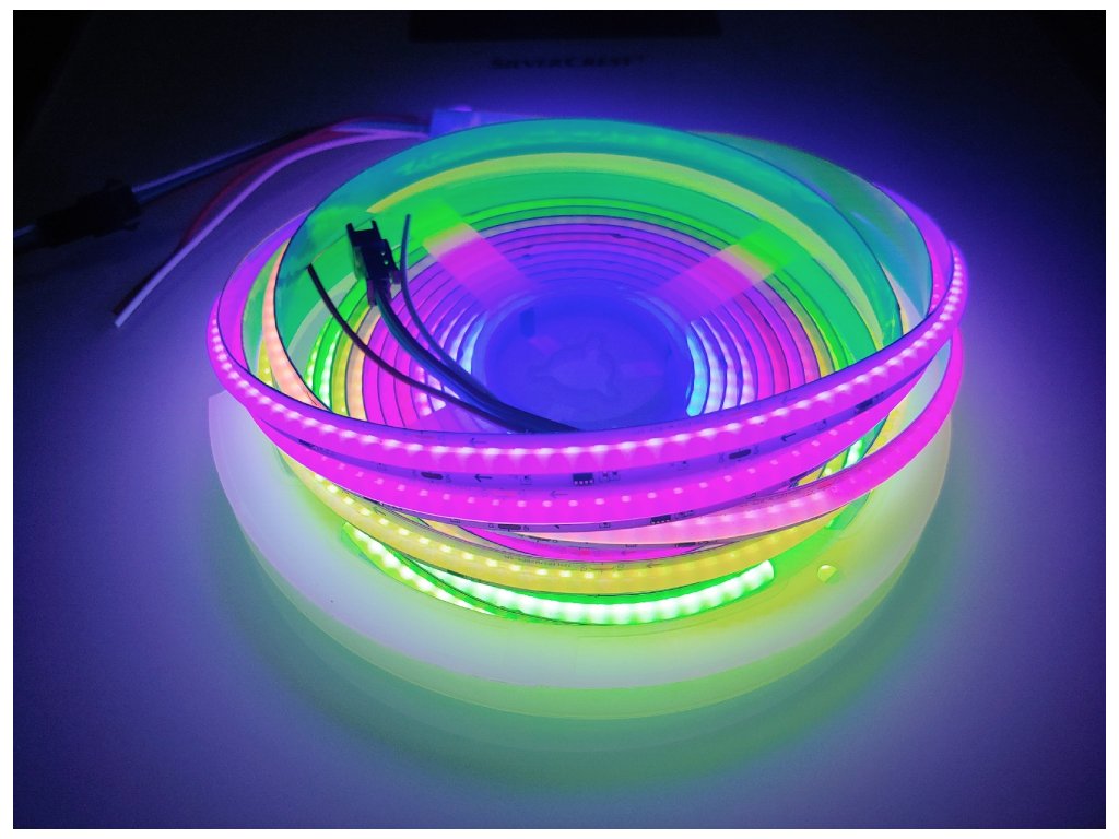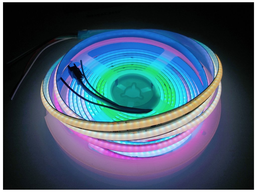 Digitálny RGB-IC LED pásik WS2811 COB (Chip On Board) je výnimočný hlavne tým, že má LED diódy usporiadane tesne pri sebe, čím vytvárajú plynulé, súvislé svetlo bez medzier. Na rozdiel od tradičných SMD LED pásikov, kde sú jednotlivé LED diódy viditeľné a oddelené od seba. Vďaka tomu sú ideálne pre aplikácie vyžadujúce plynulé a nepretržité osvetlenie.