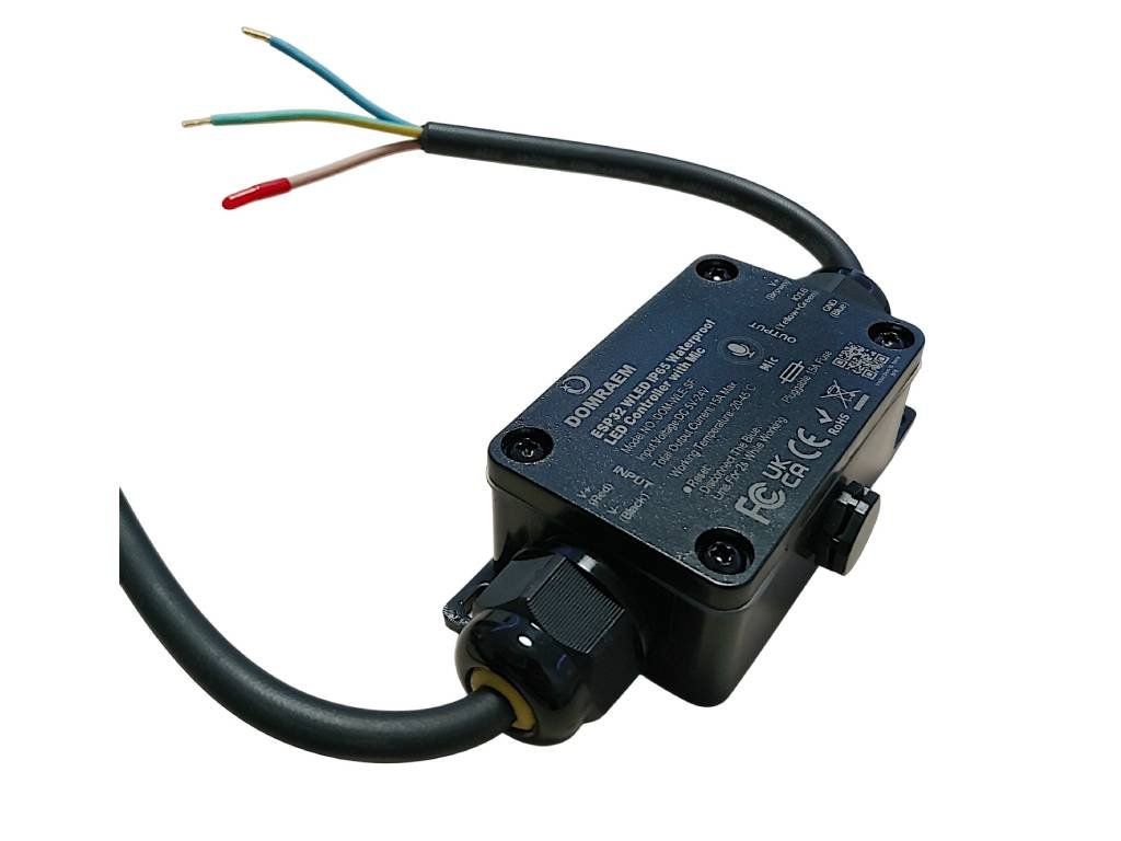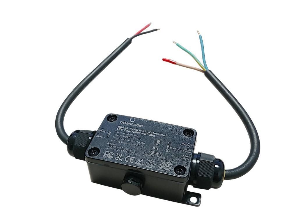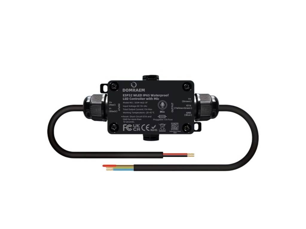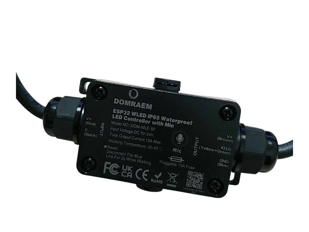 DOMRAEM ESP32 WLED ♫ Wi-Fi Controller, IP65 Waterproof, DIY wires, 1 Channel, 800pixels, 15A, 5-24V