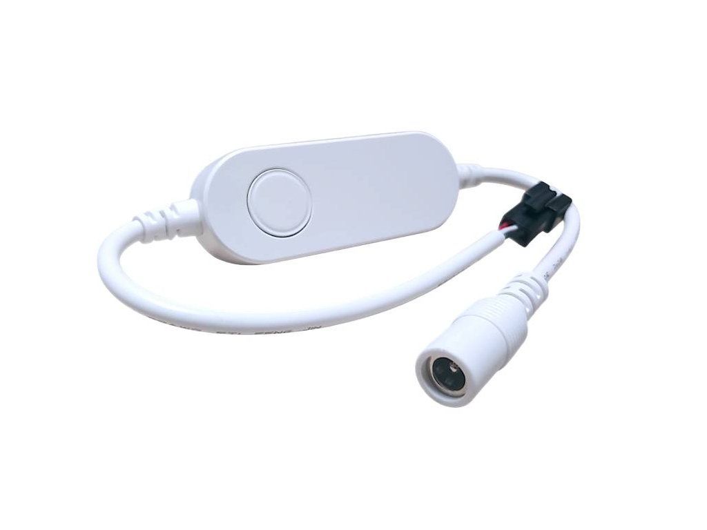 Napájanie prebieha cez štandardný DC konektor, ktorý umožňuje ovládanie digitálnych LED pásikov s napätím 12V alebo 24V.