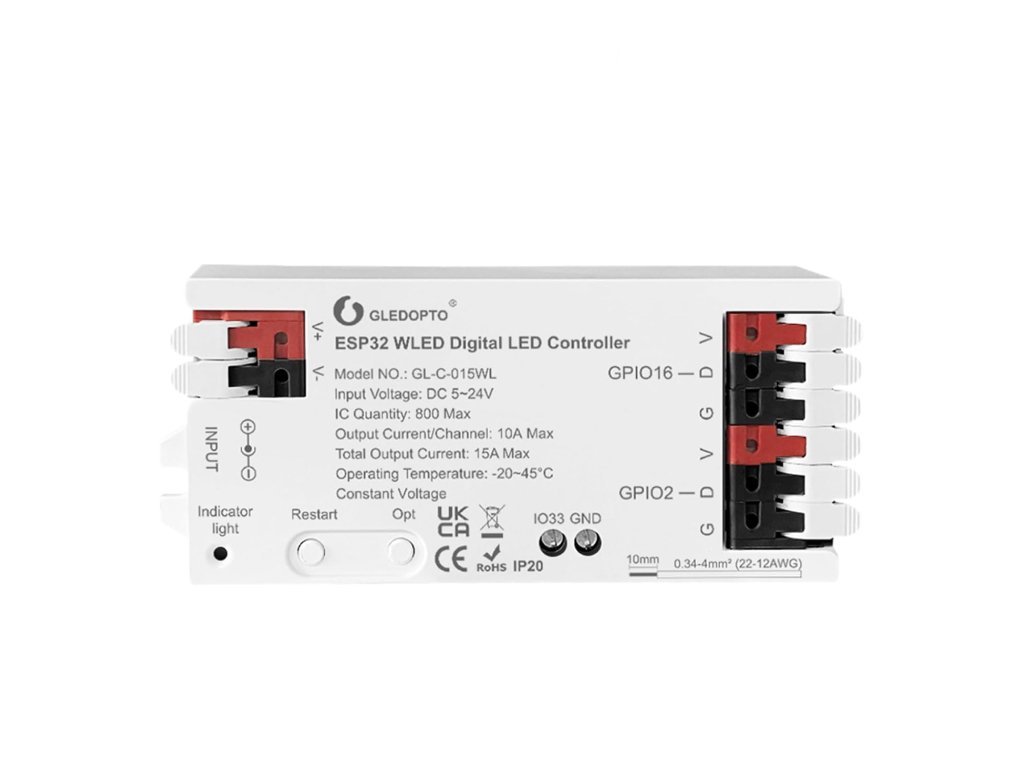 GLEDOPTO ESP32 WLED-N Wi-Fi Controller, 2 Channels, 800pixels, 15A, 5-24V