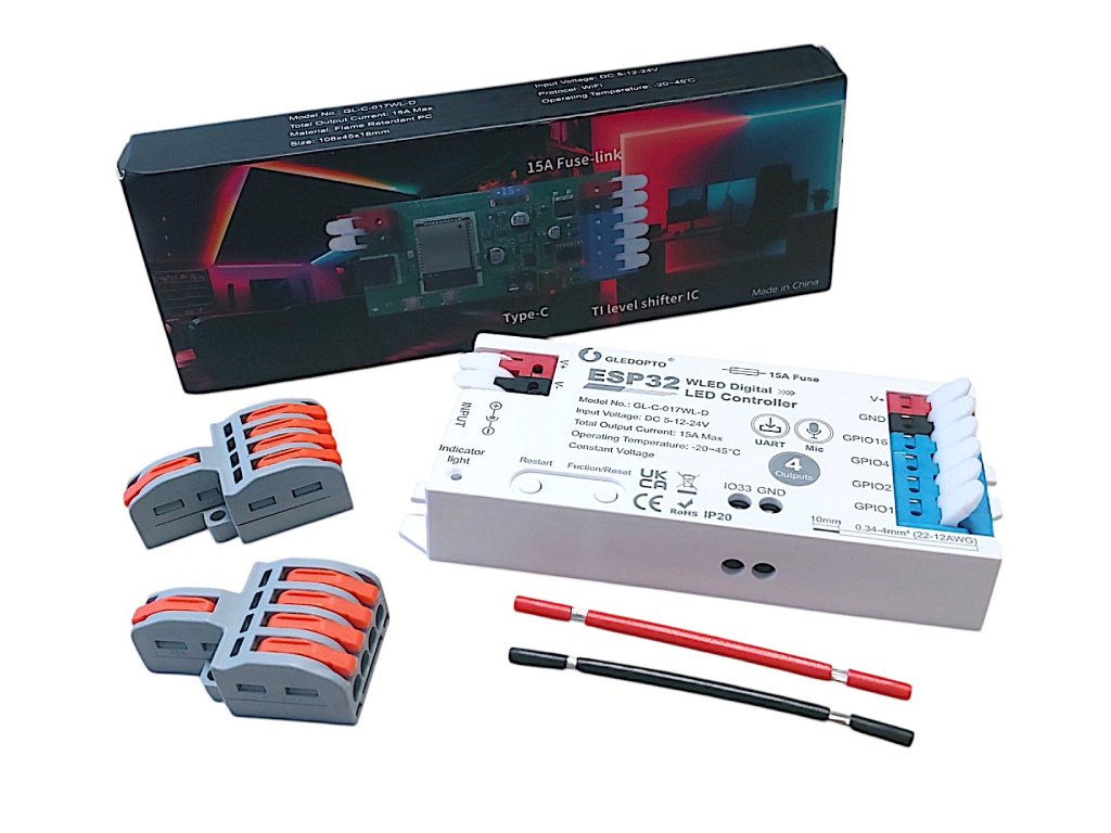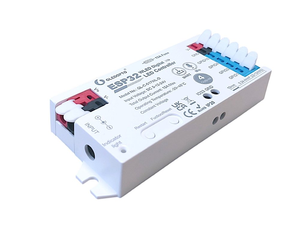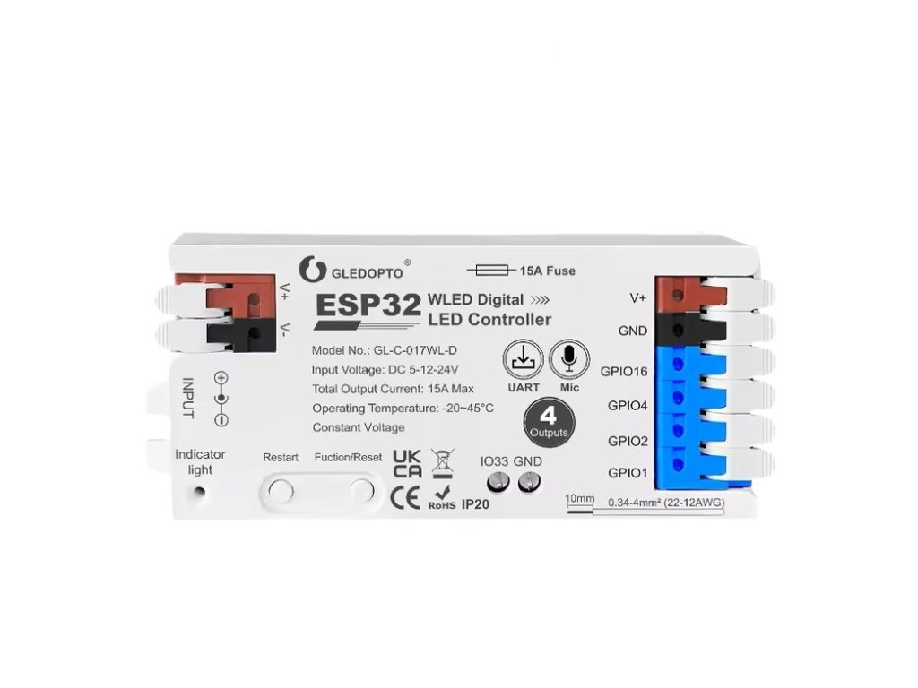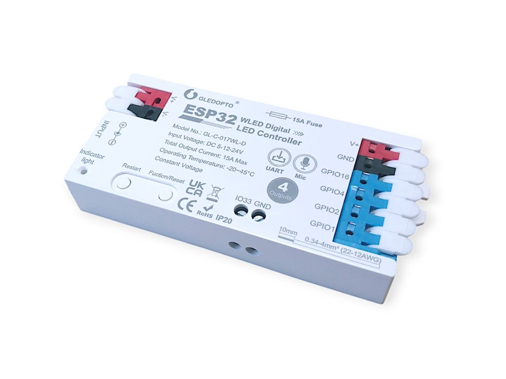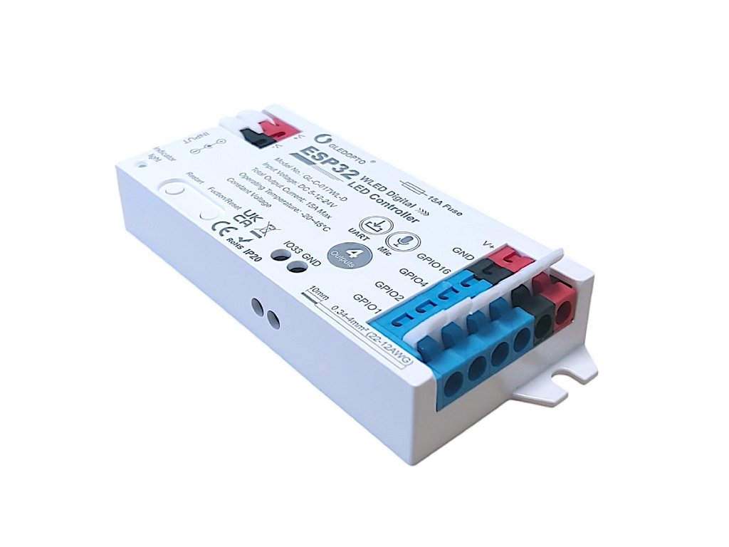 GLEDOPTO ESP32 WLED-S ♫ Wi-Fi Controller + Mic and UART, 4 Channels, 800pixels, 15A, 5-24V